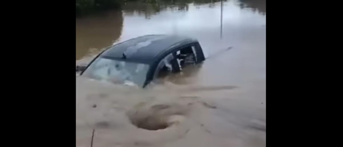 Σοκαριστικό βίντεο που ήρθε στη δημοσιότητα καταγράφει όχημα να «βουλιάζει» μέσα στον πλημμυρισμένο δρόμο, μέσα στο οποίο βρισκόταν τριμελής οικογένεια, που απεγκλωβίστηκε από κλιμάκιο της ΕΜΑΚ.