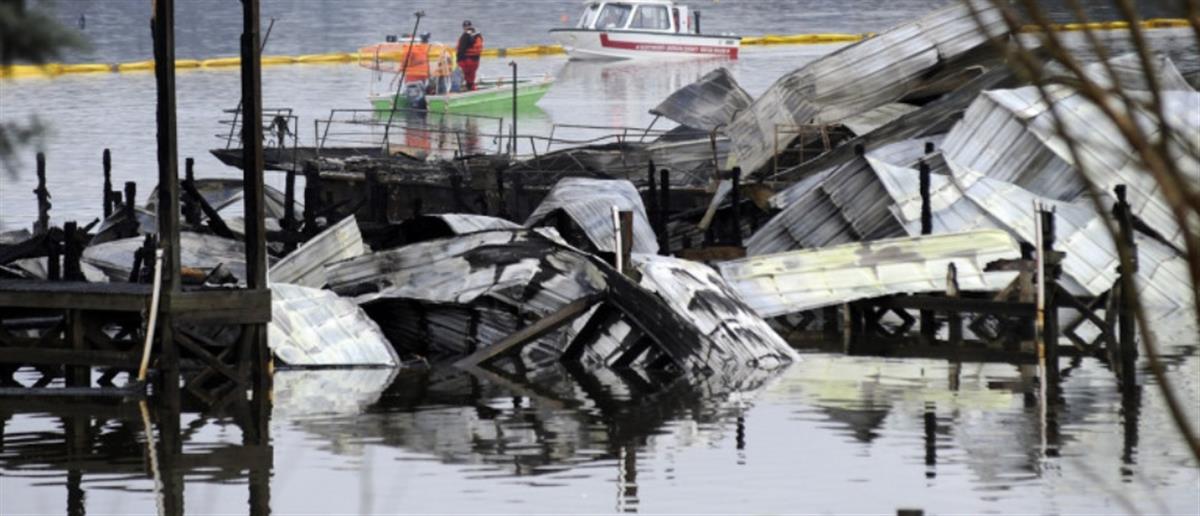 Η πυρκαγιά εξαπλώθηκε πολύ γρήγορα στα ξύλινα σκάφη, που χρησιμοποιούνταν ως πλωτά σπίτια στη λίμνη Γκάντερσβιλ, στην Πολιτεία της Αλαμπάμα. Στις φωτογραφίες που αναρτήθηκαν σε ιστοτόπους κοινωνικής δικτύωσης φαίνονται οι φλόγες να υψώνονται μέσα στο σκοτάδι, κατά μήκος του σκεπαστού προβλήτα.
