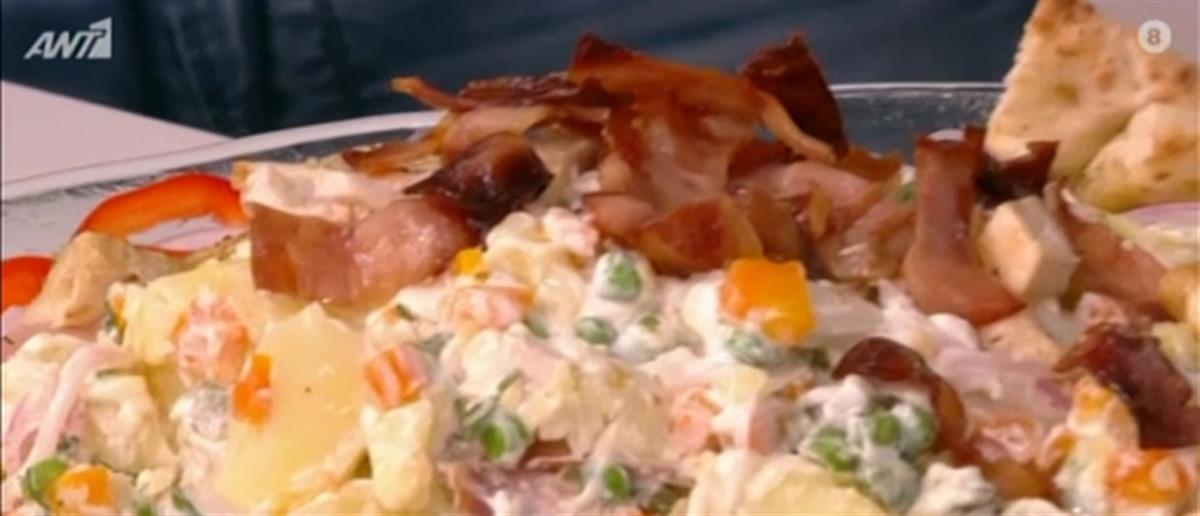 Ρώσικη σαλάτα & πατατοσαλάτα με κοτόπουλο και μπέικον