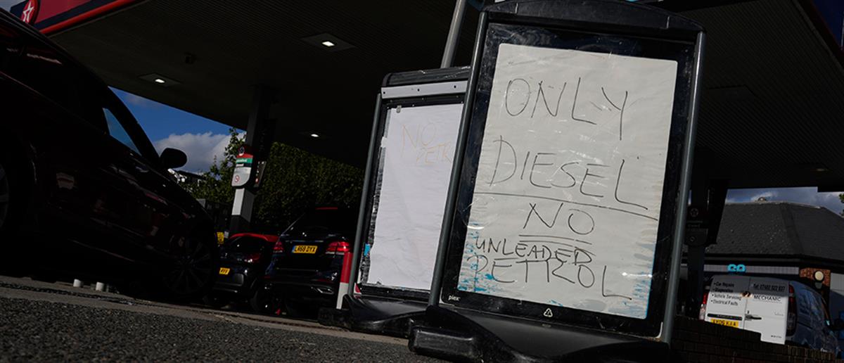 Μία προειδοποίηση για ελλείψεις στα καύσιμα στα τέλη της προηγούμενης εβδομάδας οδήγησε σε αγορές πανικού, με μεγάλες ουρές αυτοκινήτων να περιμένουν για ώρες προκειμένου να εφοδιαστούν με καύσιμα και είχε αποτέλεσμα την έλλειψη καυσίμων στους σταθμούς ανεφοδιασμού σε πόλεις σε όλη τη Βρετανία.