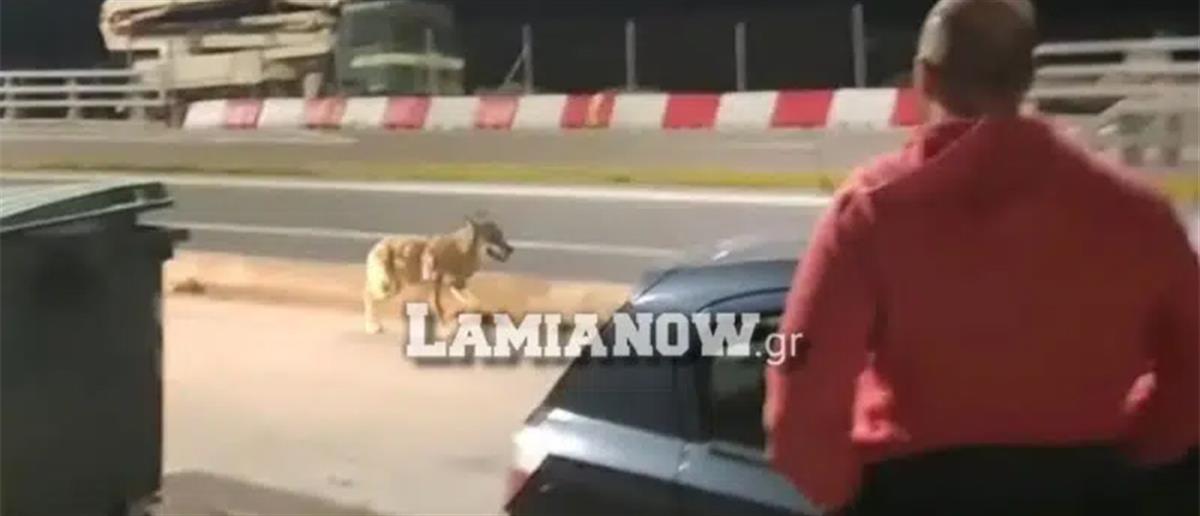 Ένας λύκος έκανε την εμφάνιση του στον δρόμο, στο λιμάνι του Αγίου Κωνσταντίνου στη Φθιώτιδα ανάμεσα σε αυτοκίνητα και πολίτες που βρίσκονταν εκείνη τη στιγμή στο σημείο.