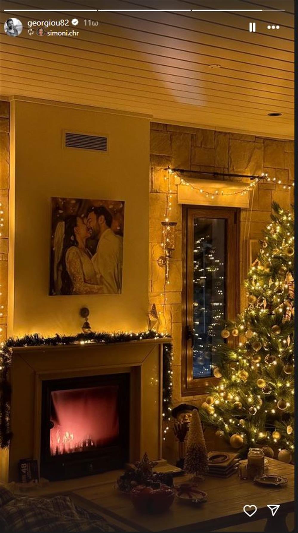 Η Σιμώνη Χριστοδούλου ανέβασε στο Instagram μια φωτογραφία –και ο Αντρέας Γεωργίου την έκανε repost- στην οποία βλέπουμε πως το ζευγάρι στα πρώτα του Χριστούγεννα ως παντρεμένο επέλεξε ένα πανύψηλο δέντρο, το οποίο διακόσμησε με χρυσά και μπρονζέ στολίδια. Παράλληλα, το σπίτι της Σιμώνης Χριστοδούλου και του Αντρέα Γεωργίου είναι στολισμένο με λαμπιόνια και άλλα χριστουγεννιάτικα διακοσμητικά.