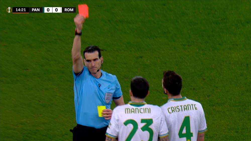 Παναθηναϊκός - Ρόμα | Κόκκινη κάρτα στον Μαντσίνι μετά από εξέταση του VAR