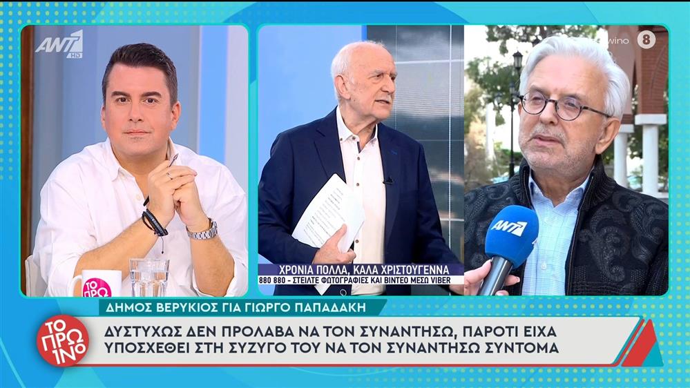 Ο Δήμος Βερύκιος μιλάει για τον Γιώργο Παπαδάκη – Το Πρωινό – 07/01/2026