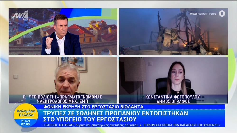 Φονική έκρηξη στο εργοστάσιο Βιολάντα: Τρύπες σε σωλήνες προπανίου εντοπίστηκαν στο υπόγειο του εργοστασίου – Καλημέρα Ελλάδα – 28/01/2026