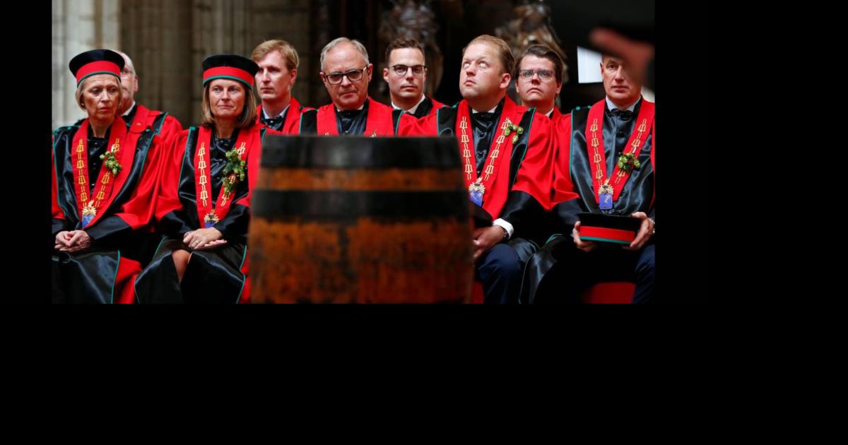 Οι ζυθοποιοί γνωστοί και ως «Knighthood of the Brewer’s Paddle» περπάτησαν με τη συνοδεία μουσικής από τη Γκραν Πλας μέχρι τον καθεδρικό ναό, προκειμένου να ευλογηθεί από τον ιερέα το ξύλινο βαρέλι μπύρας.